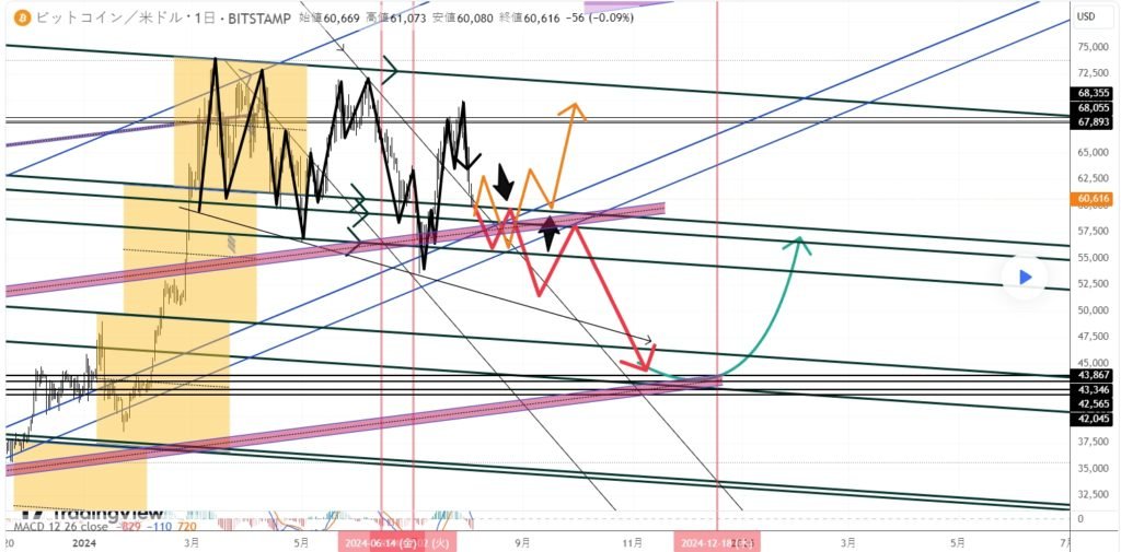 BTCUSD 8月8日ビットコインBybitチャート分析です