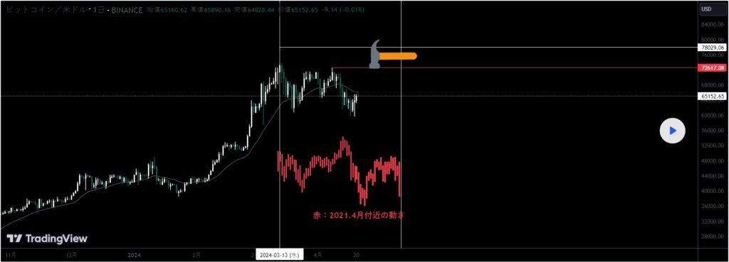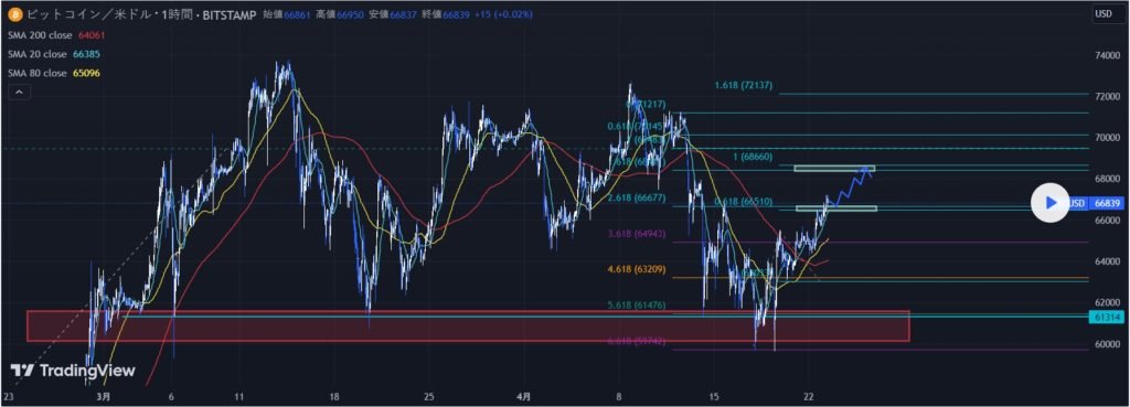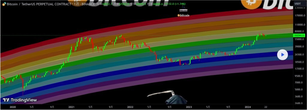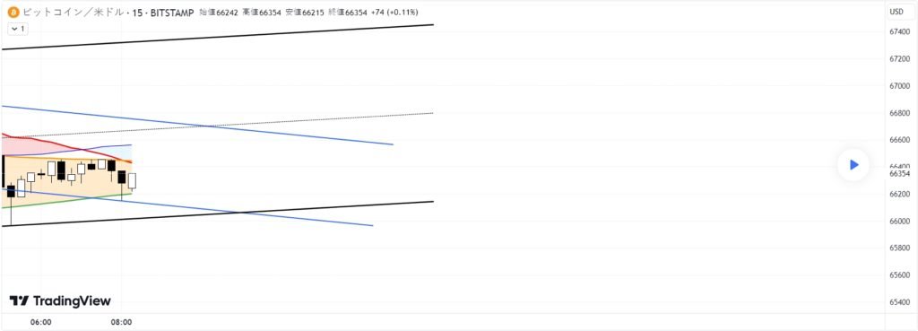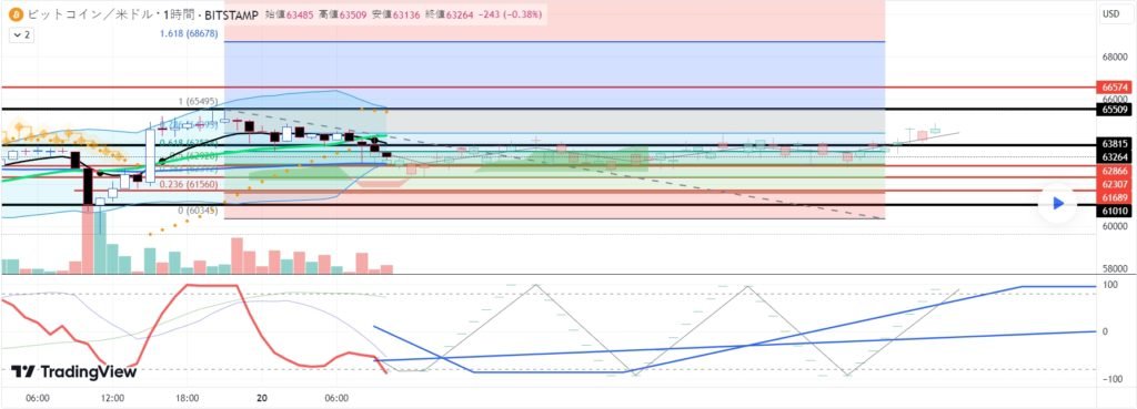 ビットコインがあがるかなと見て、ロングを仕込んでいます。 今現在(2024/04/24/8:25)、ブルーの切り下げているチャネルを上抜けていけば、ブラックのチャネルの上限まで上がっていくだろうという見立てです。 ブルーのチャネルを一旦、下抜けしたが、再度上昇し、戻ってきたので、上がっていく確率は高いとみています。 損切りはブルーのチャネルを下抜けたらというこで、それほど大きな傷を負うことなくトレードできるタイミングかと思い、投稿しました。 免責事項 : 本サイトは当ページのいかなるコンテンツや製品も推奨していない。本サイトは世界中他言語グローバルブロックチェーンサイトから引用したすべての重要情報を提供することを目的にしています。読者は上述の内容に関係したあらゆる行動をとる前に独自の調査を行い、自身の決断については全責任を負わねばならない。また、当記事は投資や金融商品購入のアドバイスではない。内容を参考としてご自由にご利用ください。
