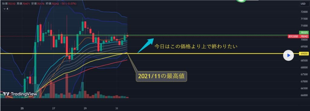 ビットコインの30分チャートです。 しばらくして9時30分の非農業雇用指数、 重要な指標発表が一つあります。 ボリンジャーバンド2時間チャートMACDデッドクロスが刻印されました メイン中央線付近にメインキャンドルがあるため 横保可能性が非常に高い位置です。 昨日、ナスダックで強い下落が発生しました。 今日は上昇波動を楽しみにしています。 ビートは、現在のショットエントリーまたはショートで食べる場所がない区間です。 テザードミナンスの場合、上昇パターンが壊れた状態であるため できるだけ安全に戦略を進めました。 *空色指移動経路 ロングポジション戦略 1. 66621.5火 ロングポジション入口区間 / 緑色支持線離脱時の手節街 2. 70472ブルロングポジション1次ターゲット -> Good 2次ターゲット 別にショットポジションは進行しませんでした。 緑色の支持線が主要な中央線区間であるため 離脱すると無条件良くありません。 表示した Uptrend区間をタッチすると中期下落傾向が崩れます。 上段に1番、2番区間はショートポジション運営区間です。 下段に3番は右下向き横保障 週末のチャート分析で 上下にドラッグしてみると上段と下段に主要価格帯 残したので、活用すればいいと思います。 ここまで、 原則売買、手折が必須で安全に運営していただきたいと思います。 4月 8 トレード稼働中: こんにちは ビットコインガイドです。 4月5日の分析文作成後、動き確認してみます。 ナスダック30分チャートです。 主要区間は黒い指で表示しました。 水色の指17920.6ポイントロングスタンバイ戦略で 下段に1番区間タッチした後、強い反灯後に仕上げ。 全底点が壊れない 上昇波動を狙った戦略だったが 1番区間をタッチしながら反騰に成功しました。 先週から 押し続けていた主棒チャートMACDデッドクロスが刻印されました。 今回の反騰で ボリンジャーバンド4時間チャート中央線付近に到達しました。 方向性が決まるように見えます。 戦略記事で一緒に解放します。 ビットコインの30分チャートです。 主要区間は黒い指で表示しました。 水色指66621.5火ロングエントリー後 ピンク色、オレンジ色の抵抗線 表示した2番区間タッチした後、仕上げ。 週末はずっと反騰してきました。 Uptrendの下落傾向線を突破 Top区間目標がまで121.5ドル差でタッチ失敗。 戦略はアクティブ処理進めました。 もう少し上げるとパーフェクトなのに残念ですね。 下部にGap区間が新しく作成されました。 今日ナスダックの動きのように全体的に解いてみましょう。 4月 8 トレード稼働中: ビットコインの30分チャートです。 リアルタイムライフラインを残しました。 先週金曜日に入った席 左下に紫色の指66621.5火ロング進入後 主要区間作図しました。 4月 8 トレード終了: 利益確定目標に到達: 70472ブルトップセクションタッチ、 パーフェクトが出ました。 4月 8 トレード稼働中: ビットコインの30分チャートです。 表示したGood区間を突破! 力がいいですね。 免責事項 : 本サイトは当ページのいかなるコンテンツや製品も推奨していない。本サイトは世界中他言語グローバルブロックチェーンサイトから引用したすべての重要情報を提供することを目的にしています。読者は上述の内容に関係したあらゆる行動をとる前に独自の調査を行い、自身の決断については全責任を負わねばならない。また、当記事は投資や金融商品購入のアドバイスではない。内容を参考としてご自由にご利用ください。