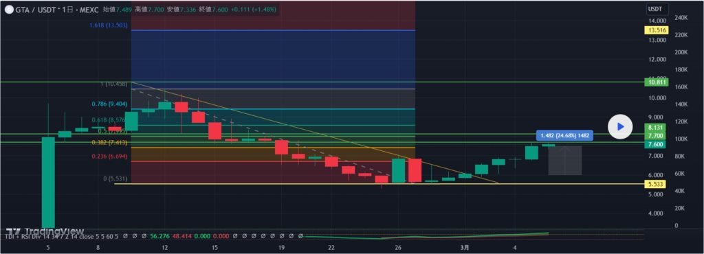 現在エリオット波動4波の途中と予想しています。 理由 ・①波との被りが薄い ・②波と④波のオルタネーションがわかりやすい(複雑と言えば複雑ですが…) ・半減期のタイミングで大きく上昇する見込み この先の5波で大きく伸びるかもしれません。 しかしながら調整が入る可能性があります。 下赤矢印の部分ですが、タイムエクステンションのメジャーなフィボナッチ比率のタイミングで狙ったかの様に下落しています(0.382 0.618 1 今回1.382) 過去3回は偶然下落しただけで今回もそうなるとは限りませんが、その時は最高の買い場となりそうです。 免責事項 : 本サイトは当ページのいかなるコンテンツや製品も推奨していない。本サイトは世界中他言語グローバルブロックチェーンサイトから引用したすべての重要情報を提供することを目的にしています。読者は上述の内容に関係したあらゆる行動をとる前に独自の調査を行い、自身の決断については全責任を負わねばならない。また、当記事は投資や金融商品購入のアドバイスではない。内容を参考としてご自由にご利用ください。