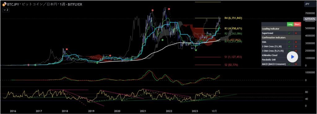 今週の振り返りと来週の展望 ビットコインは12月に入ってから44500から40500ドルの間を推移するレンジが続く 安値は切り上げておりアセトラ形成中 ここから年末年始に向けて出来高は減ることが予想されるので膠着状態はもう暫く続くと思われる その他注目材料 ビットコインの現物ETF申請認可 イーサリアム現物ETF申請 マウントゴックス債権者への支払い期限9/30->一部の債権者への支払い開始? BITCOIN半減期来年4/28 来週の注目ポイント ボックスレンジ(44500〜40500) 44500を上限とするアセンディングトライアングル 来週のトレードポイント レンジ上限下限での逆張り 水平線(44500)を実体で明確に抜けたら水平線を背にロング 免責事項 : 本サイトは当ページのいかなるコンテンツや製品も推奨していない。本サイトは世界中他言語グローバルブロックチェーンサイトから引用したすべての重要情報を提供することを目的にしています。読者は上述の内容に関係したあらゆる行動をとる前に独自の調査を行い、自身の決断については全責任を負わねばならない。また、当記事は投資や金融商品購入のアドバイスではない。内容を参考としてご自由にご利用ください。