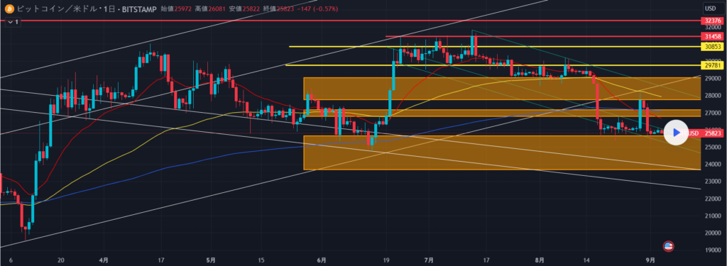 9月4日ビットコインBybitチャート分析です