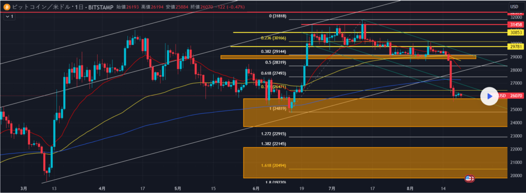 8月24日 ビットコインBybitチャート分析です