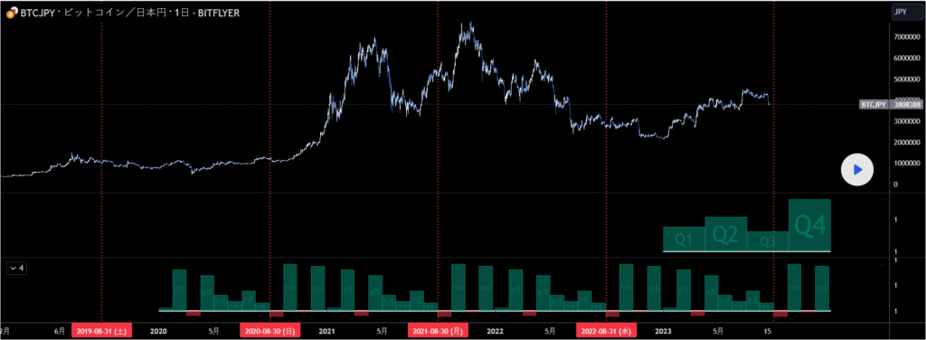 8月20日のコメント BTC考え方を変えR3までの上昇は期待しない方向へ NASDAQが売りこまれたので大きく下落 雲のネジレで反発できるかです 基本 上の窓で利確 下の窓で買いを考えています 全てのトレードライン(週足) PIVOT Base Line P : Bull upside / Bear down 利確Line Bull R1→R2→R3→R4→R5 / Bear S1→S2→S3→S4→S5 R4/R5を超えるS5を割ると再計算します ichimoku cloud Base Line : Bull upside / Bear down MACD 0 line : Bull upside / Bear down RSI 50 line : Bull upside / Bear down ★注意 横横が続く場合、シンプソンになる可能性が高く大きく下や上に動く 週足MA200以下は、株の投資家は離れるので上がりにくいです 週足ハッシュリボンは一時的な点灯はあるので注意してください 最近のBTCは、米国指数に左右される場合があるので注意 8月 20 コメント: 週足 左:BTC 右:BTC 週足 PIVOT〇 ichimoku○ MACD○ RSI✖ 上昇トレンド 左:テクニカル 右:Bull&Bear Bull優勢中 強い>0ライン>弱い 8月 20 コメント: 日足 左:BTC 右:BTCUSD 左:7年間の平均騰落率 右:ハッシュリボンと窓