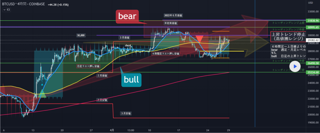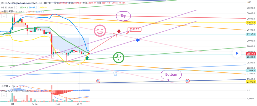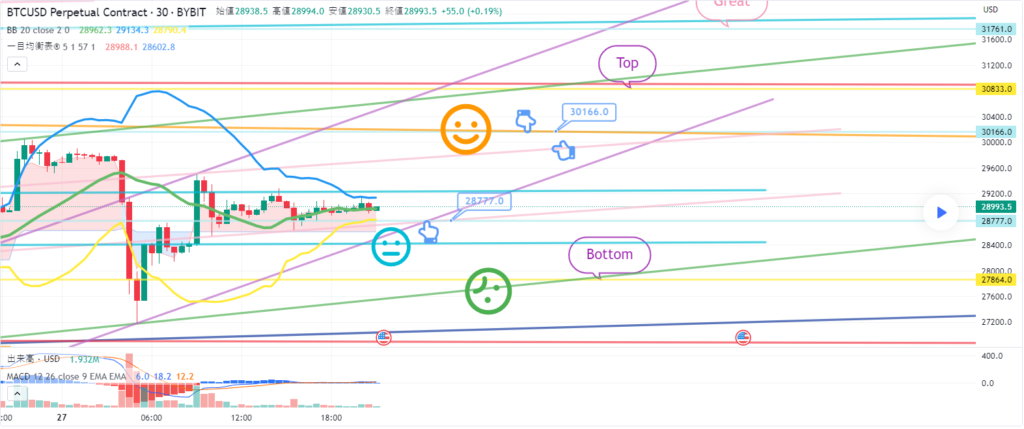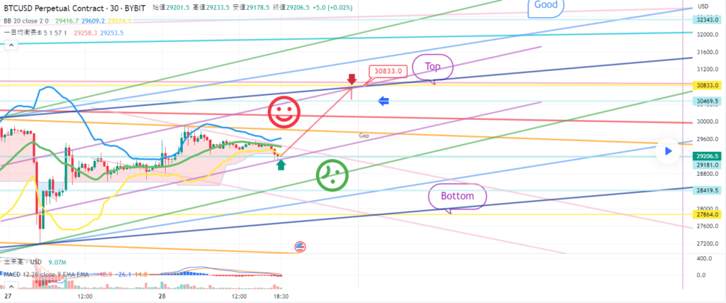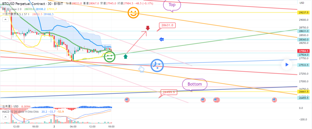 ビットコインの30分チャートです。 上部タッチ後の横方向の保守 ナスダックとテザードミナンスの両方とも、横ばいの可能性が非常に高いです。 退屈な章が続いています。 今週までナスダックで大きな動きがあっても テザードミナンスMACDデッドクロスを解決する必要があるため ビットから強く上昇するのは難しいようです。 (今週の耐久性のある横断または強い下落の可能性 適当な横歩に勝負をかけました。) 今日は適度に偶像香で準備しました。 矢印移動パス ロングポジション戦略 1. 27924火 ロングポジション入口区間 / 緑色支持線離脱時の手節街 28631ブルロングポジションターゲット -> Top区間2次ターゲット 右下向きに追加調整または手節価を長く取る場合 噛むことができるので できるだけタイトにとりました。 ナスダック、テザードミナンスの波動に追い込まれる場合 下部に水色の指区間に注目してください。 私の分析は単に参考にしてください。 原則売買/手折りが必須で安全に運営していただきたいです。 トレード終了: 利益確定目標に到達: こんにちは ビットコインガイドです。 体調乱調でたくさん遅れましたね。 ナスダックアナリティクスの作成後の動きです。 主要区間は黒い指で表示しました。 午後まで横たわって 11時の指標発表で悪材が出た後 水色の支持線ボトム区間まで 強く離脱しました。 ビットコイン分析文の作成後の動きです。 主要区間は黒い指で表示しました。 矢印移動経路 27924火に触れて、28631火まで反等成功 戦略は翼切れ処理しました。 昨日はナスダックとは対照的にデカップリングが出ました。 今日、FOMCでどんな動きが出てくるかが重要だと思います。 全体的に見てみましょう。 免責事項 : 本サイトは当ページのいかなるコンテンツや製品も推奨していない。本サイトは世界中他言語グローバルブロックチェーンサイトから引用したすべての重要情報を提供することを目的にしています。読者は上述の内容に関係したあらゆる行動をとる前に独自の調査を行い、自身の決断については全責任を負わねばならない。また、当記事は投資や金融商品購入のアドバイスではない。内容を参考としてご自由にご利用ください。