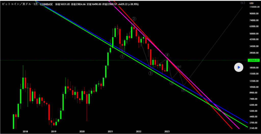 ビットコイン BTC は三角トレンド