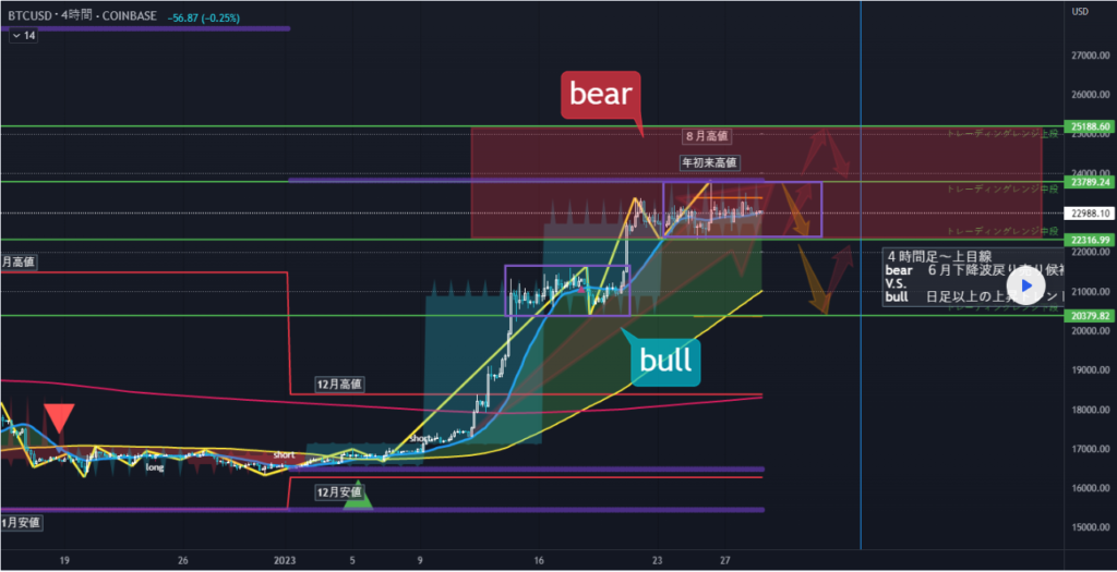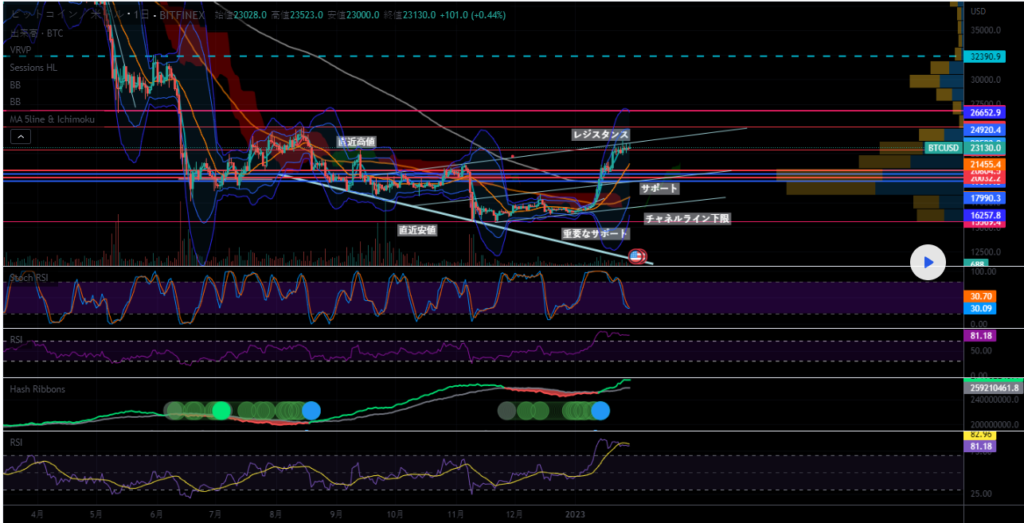 ビットコインは23000ドル前後の居