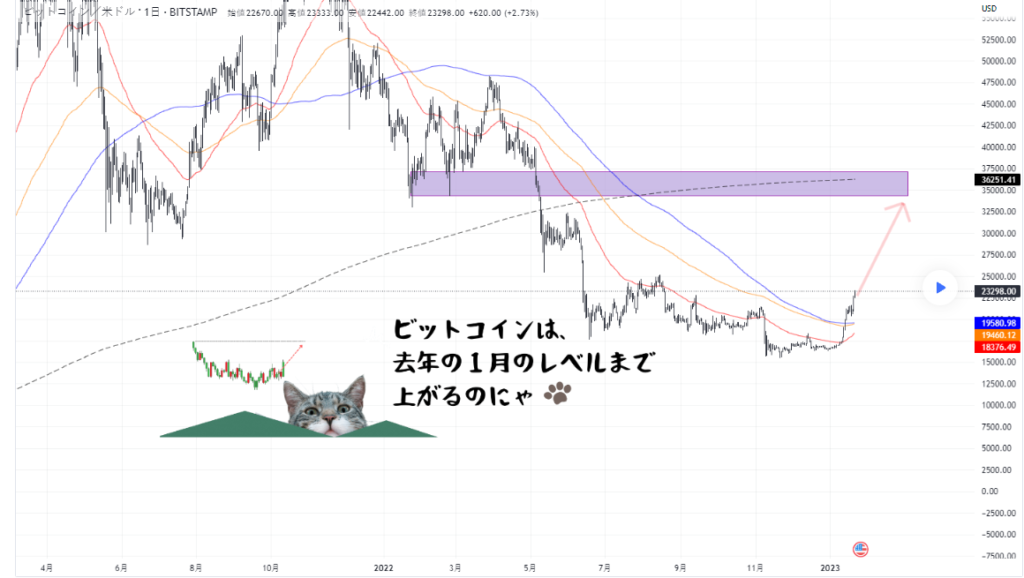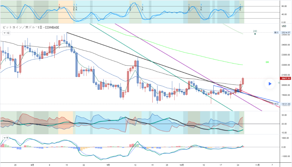 ビットコインが黒3ヶ月線を上抜け、短