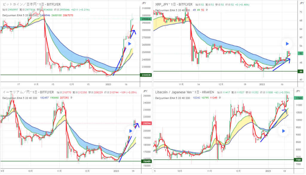 仮想通貨の価格が全体的に上昇し始めまし