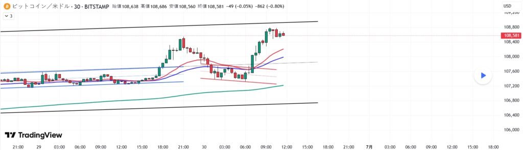 ビットコインの30分チャートです。 しば