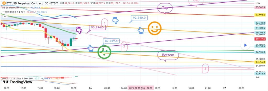 BTCUSD 2月25日 ビットコインBybitチャート分析です