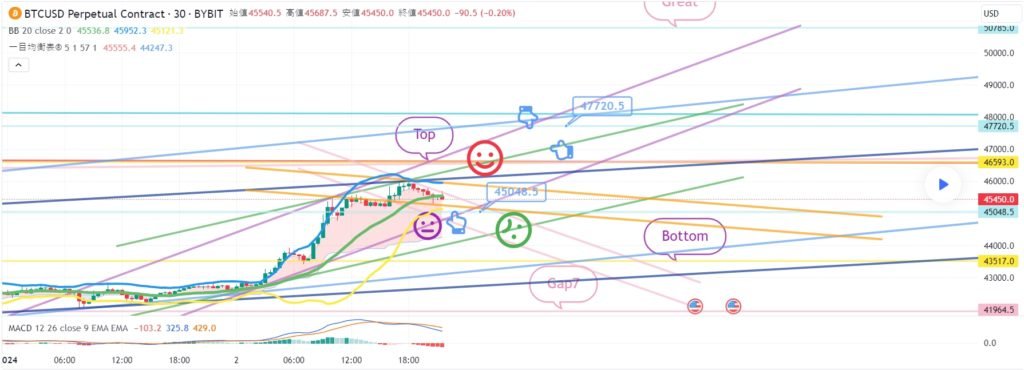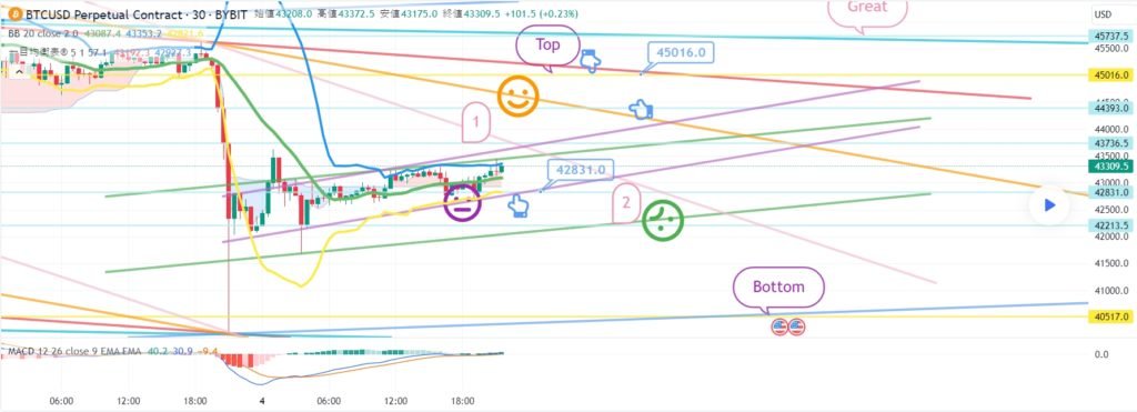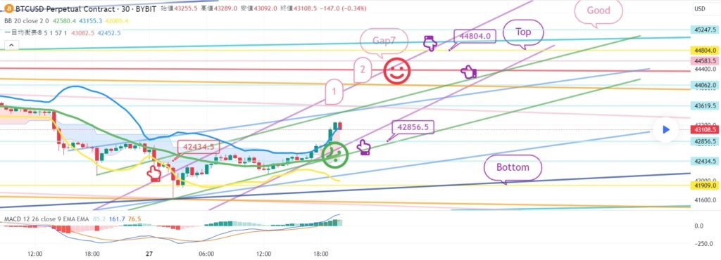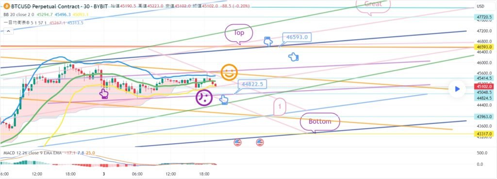 ビットコインの30分チャートです。 今日ナスダック指標発表はありません。 ナスダックの場合は、横保障だけを出してもいいです。 メジャー反灯区間ともつながるスポットです。 ビットは午後に反騰する 12時間チャートMACDデッドクロスが解放されてしまった 追加のキャンドルが生成される 夕方9時前にオレンジ色の抵抗線を突破するとベストです。 反騰に失敗した場合、横保可能性も高いです。 また、テザードミナンス強い下落可能性に今日の戦略を作りました。 *赤い指の移動経路 ワンウェイロングポジション戦略 1. 43977.5火 ロングポジション入口区間 / 紫色支持線離脱時の手節街 2. 45399ブルロングポジション1次ターゲット -> Good区間2次ターゲット 手節街はわざわざタイトに握りました。 横歩の場合下段に1番区間43269.5火に注目してください。 この区間を離れる場合 まだデータがないため、水色の支持線区間は 無視して強く離脱する可能性があるので注意してください。 今日の緑色の支持線が維持される条件であれば リップルXRPはすぐに事故のように見えます。 ここまで、私の分析記事は単に参考にしてください。 原則売買/手折が必須で安全に運営してください トレード終了: 利益確定目標に到達: こんにちは ビットコインガイドです。 1月8日の分析文作成後、動き確認してみます。 ナスダック30分チャートです。 主要区間は黒い指で表示しました。 赤い指16262.2ポイント ロングポジションに入った後 調整せずにTop区間まで到達 調整が出る場所で急上昇 やはりナスダックという表現が正しいと思います。 昨日は離脱せずに横見だけしてもビットでは良かったのに 4+6 MACDゴールデンクロス以降 一峰チャート中央線までキャンドルが復旧した。 今日の動きは重要なように見えます。 ビットコインの30分チャートです。 主要区間は黒い指で表示しました。 下部に赤い指43977.5火ロングポジション追撃枚数以降 紫色の支持線を離れることなくそのまま垂直上昇 表示させたTop -> Good区間までパーフェクトが出ました。 戦略は翼切れ処理完了。 ナスダックとカップリングしながら ガンマンに涼しい3300ドルまでオーバーシュートが出ましたね。 右上にGreat 47720.5火1つ残した状態で 今日はどんな動きが出るのか 夕方に全体的に確認してみましょう。 リップルもずっと夢を見ています。 循環ポンプの選択を受けるために調整なし 支えなければならないので参考にしてください。 トレード中: ビットコインの30分チャートです。 午前中にライフラインを残して、 緑色の支持線にぴったりです。 更なる離脱からは右下へと下落し続ける パターンが壊れる可能性があります。 ロングポジションを維持している方は参考にしてください。 免責事項 : 本サイトは当ページのいかなるコンテンツや製品も推奨していない。本サイトは世界中他言語グローバルブロックチェーンサイトから引用したすべての重要情報を提供することを目的にしています。読者は上述の内容に関係したあらゆる行動をとる前に独自の調査を行い、自身の決断については全責任を負わねばならない。また、当記事は投資や金融商品購入のアドバイスではない。内容を参考としてご自由にご利用ください。