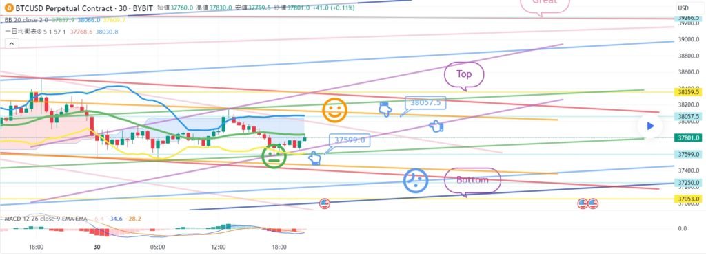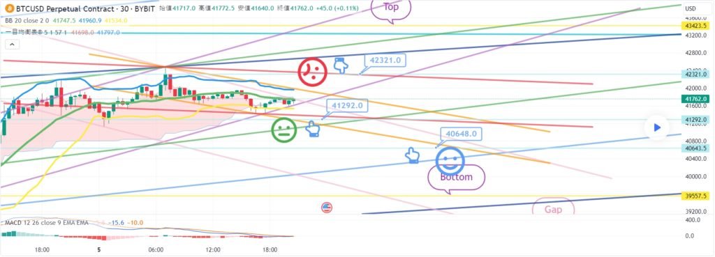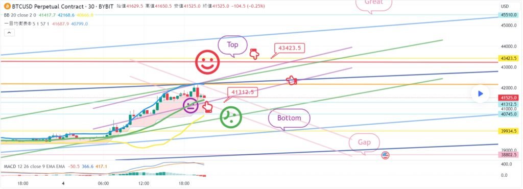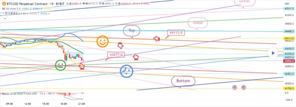 ビットコインの30分チャートです。 10時30分ナスダック指標発表が一つあります。 1 + 4区間に到達しながら横断しています。 6時間チャートMACDデッドクロスが刻印されましたが 現在の場所は危険な場所です。 まだ5分棒の傾向転換も出ていません。 テザードミナンスは1回、2回程度上に撃つことができる条件です。 ビットは追加の調整に関連付けることができます。 1+4パターンがまだ壊れておらず、 ずっといたずらしているが、ナスダックの反騰の可能性まで含めて 戦略に代入しました。 *赤い指の移動経路 ロングポジション戦略です。 午前中に作図した42885ドルでロングポジションを持っている人 多いと思いますので、そのまま実行してみましょう。 1. 43077火 ロングポジション進入区間 / 緑色支持線 完全離脱時の手折り 2. 44113ブルロングポジション1次ターゲット -> Good 2次 -> Great 3次ターゲット。 ロングポジションの立場で1+4区間を維持するには とにかく、緑色の支持線は守らなければなりません。 離脱した場合、 下部に表示した空色の支持線横保障 -> Bottomまで つながるかもしれませんが、 6時間デッドクロスはあまり怖くありません。 12時間MACDデッドクロスまで 一度につながるのは難しいと判断しました。 今日緑色の支持線を離れる場合 明日以降はさらに下落する可能性があります。 注意してください。 今日の席は難易度がたくさん高いので、 初心者の方は休んだり、手折りは無条件に指定してください。 ここまで、私の分析は単に参考にしてください。 原則売買/手折が必須 安全に運営してほしい こんにちは ビットコインガイドです。 12月7日の分析文作成後、動き確認してみます。 ナスダック30分チャートです。 主要区間は黒い指で表示しました。 赤い指15822.1ロングポジションに入った後 ピンク – >オレンジ色のパラレルラインを突破しながら Top区間到達 すっきりと強い上昇パーフェクトが出てくれました。 ビットコインの30分チャートです。 主要区間は黒い指で表示しました。 赤い指43077火のロングポジションに入った後 Top区間タッチ失敗。 オレンジ色の抵抗線に触れ、極横保障仕上げされています。 160ドルの違いでパーフェクトは失敗しました。 戦略はアクティブ処理。 まだ緑色の支持線タッチなし 4時間チャート中央線を離れないで よく維持してくれています。 免責事項 : 本サイトは当ページのいかなるコンテンツや製品も推奨していない。本サイトは世界中他言語グローバルブロックチェーンサイトから引用したすべての重要情報を提供することを目的にしています。読者は上述の内容に関係したあらゆる行動をとる前に独自の調査を行い、自身の決断については全責任を負わねばならない。また、当記事は投資や金融商品購入のアドバイスではない。内容を参考としてご自由にご利用ください。