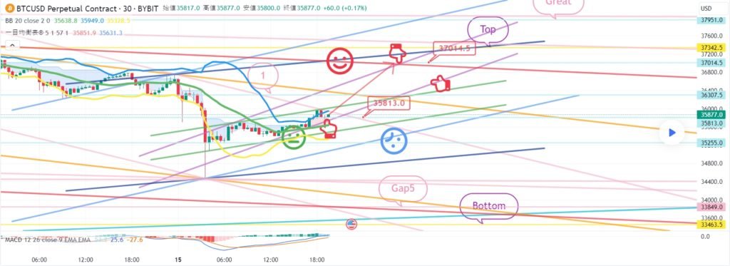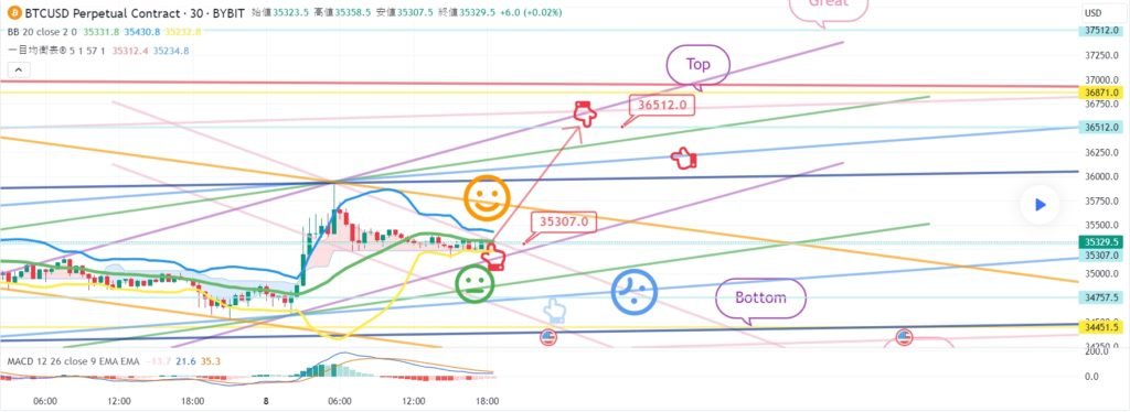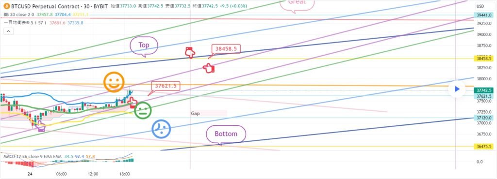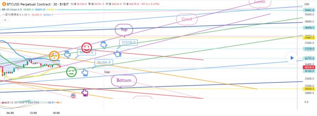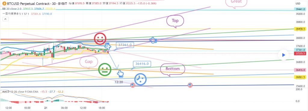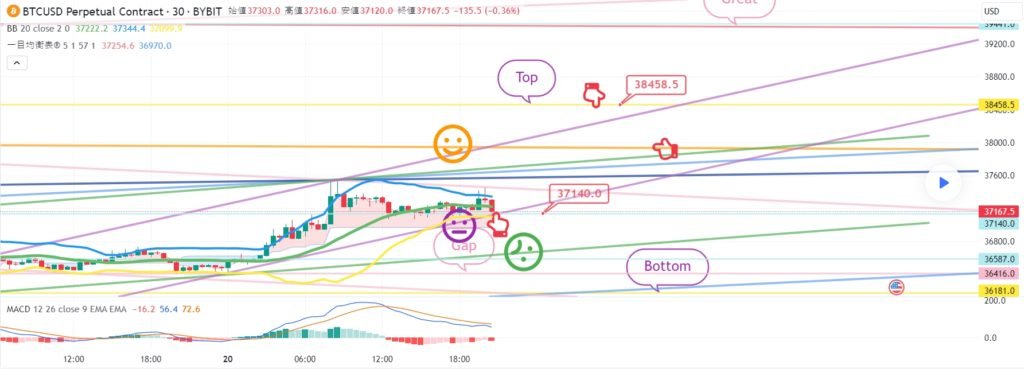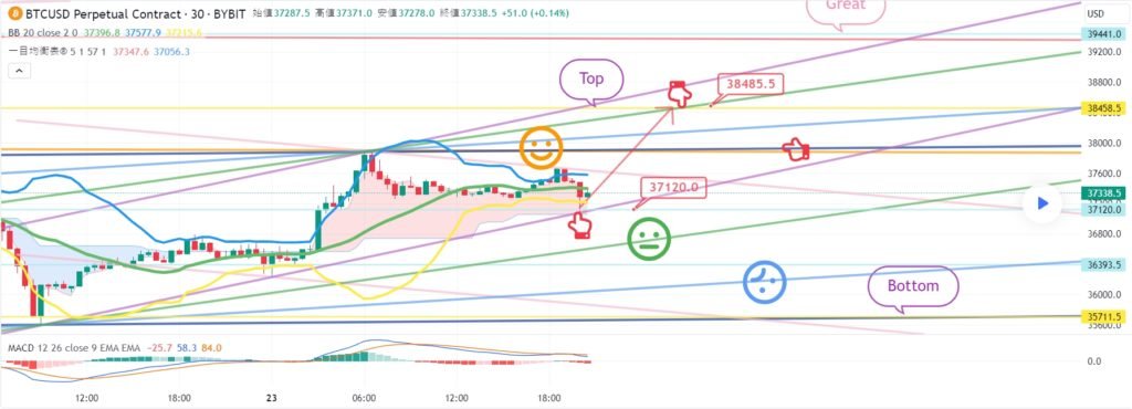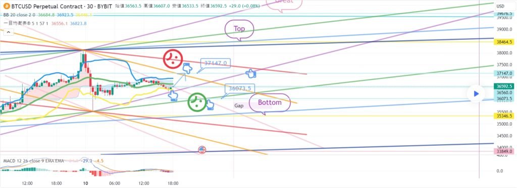 ビットコインの30分チャートです。 今日はナスダックの早期締め切りです。 11時45分に指標発表が一つあります。 昨日37120ドルロングポジションを維持している人もいます。 清算された方もいらっしゃると思います。 視点そのままに、ワンウェイロングポジション戦略です。 私は私が残した分析文に最大限責任を負います。 *赤い指の移動経路 ロングポジション戦略 1. 37621.5火災追撃枚数 / 緑色支持線離脱時の手節価 2. 38458.5ブルロングポジション1次ターゲット -> Great区間2次ターゲット 一番右側に紫色の縦線は、 新しく主峰が生成される区間であり、 Gap区間はギフト市場の締め切り価格です。 また、緑色の手節が同じように進みましたね。 Top区間からは月棒チャート抵抗線になります。 上尾に強い反騰が出た場合 最高点を手折り基準でショートポジション運営もよさそうです。 代わりに力で引き上げることができるので、 キャンドル仕上げ後に挑戦してください。 最後に、 投資家が見やすい できるだけ単純に分析文を進めていますが、 ただ一度もむやみに、一通り進んだことはありません。 上昇場でショートポジションをとるのは反対売買であり、非常に危険です。 ショートをとらなければならない時は当然ショートポジションも運営します。 危険なポジションでショットをキャッチするよりも ロングポジション待機が有利で、 やってみればわかるけど、 今日のような追撃枚数で収益を上げるのは本当に簡単ではありません。 それだけ果敢な戦略であり、手節家も当然残しています。 ロングショート無条件に従わないで、 各自本人のポジションで支持抵抗線、目標が、手節が残したまま 参考ご活用くださいという内容です。 私の分析は本当に単に参考にしてください。 原則売買/手折が必須で安全に運営していただきたいと思います。 こんにちは ビットコインガイドです。 11月24日の分析文作成後の動きです。 ナスダック30分チャートです。 メインセクションは黒い指でマークしました。 赤い指16018.9ロングエントリー後 緑色の支持線の離脱 – >水色の支持線まで 右下向きに下落した後の仕上げ 最高点突破を控えて再調整がつながっています。 4時間の中央線を離れたので 追加の下落がつながる可能性があるため、ショートポジションの操作も有利です。 ビットコインの30分チャートです。 主要区間は黒い指で表示しました。 赤い指37621.5火ロングエントリー後 オレンジ色抵抗線突破 -> Top区間38458.5火まで 残念ながら、8.5ドル差でタッチできませんでした。 ロングエントリー後に手節が修正できるので 戦略は手動清算。 23日の分析記事とリンクすると 左下に紫色の指区間から、 ある程度強い上昇につながった。 週末は緑色 – >水色の支持線が離脱して横になっています。 上部に37869.5ドルの上部Gap区間が生成されました。 ナスダックの動きに合わせて全体的に見てみましょう。 免責事項 : 本サイトは当ページのいかなるコンテンツや製品も推奨していない。本サイトは世界中他言語グローバルブロックチェーンサイトから引用したすべての重要情報を提供することを目的にしています。読者は上述の内容に関係したあらゆる行動をとる前に独自の調査を行い、自身の決断については全責任を負わねばならない。また、当記事は投資や金融商品購入のアドバイスではない。内容を参考としてご自由にご利用ください。