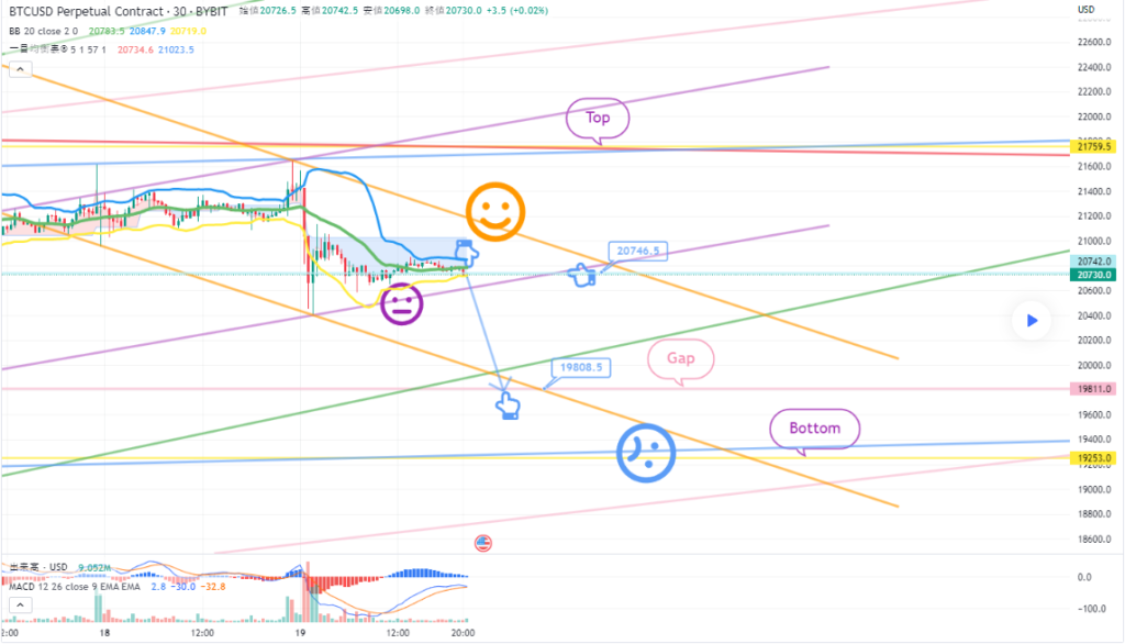 今週は勢いよく上昇してますね。 果たして底打ちしたのかどうかを検証していきます。 長いですがゆっくりとご覧くださ 検証としては2点あります。 ①表題のカウント例(Ⓒ波インパルス)がガイドラインと比較してどうか? ②底からのカウント例としてどのようなカウントになれば底打ちできると確認できるか? これらを順を追って確認していきたいと思います。 ①Ⓒ波インパルスをガイドラインと比較してみましょう。 ・インパルスのガイドラインに綺麗なチャネルを形成するとあります。 (i)~(iv)まで綺麗に収まってますね。 (v)波ですがしばしばこの(v)波がダイアゴナルになる時にチャネルから外れてくる動きがあります。この事を考慮するとチャネルを形成したと言えるのではないでしょうか? 以前の投稿でも案内してますが このようなインパルスの形は上昇の勢いがだんだんと少なくなって来ている為、チャネルから外れてくる事があると考えましょう。 これはダイアゴナルの性格と一致しますよね。どうしてこのようになるのか理解して覚えましょう。 ・波の均等性 波の均等性では3つのアクション波のうち一つが延長すると他のアクション波は均等化しやすくなるといったガイドラインです。 また同じ大きさにならない場合は片方が0.618倍や1.618倍になり易いともされています。 今回は(iii)波が延長してますので(i),(v)の関係が波の均等性に当てはまるかですが、綺麗に(v)波は(i)波の0.618倍となってますね。 ・修正波の深さ(リトレース) リトレースは(ii)波が(i)波の50%~61.8% (iv)波が(iii)波の38%~50%とガイドラインがありますね。 (ii)波はほぼ50%で(iv)波は38%に近い値となってます。 ・比率関係 インパルス全体は(iv)波の位置で黄金比に分割できる 少し微妙な位置ですが。。 黄金比とは0.382:0.618あるいは1:1.618の比率のことです。今回は前者に近い比率関係ですね。 これらの事からⒸ波のインパルスカウント例は問題がないと思われます。 ②底からのカウント例はどうでしょう? この底からのカウントに矛盾がなければ底打ちの可能性があると考えてもいいかもしれませんね。 底と考える矢印からの部分ですが、前半の緑丸部分は過去投稿”ダブルジグザグ”に詳細がありますので、ご確認を! この投稿で重要なのは ・緑丸部分がインパルスには見えない事 ・緑丸部分がダイアゴナルには見えない事 という事はこの緑丸部分だけでは推進波にはならないという事ですね。 では底からのカウントは推進波とはできないのでしょうか?? 思い出して下さい、ジグザグ系を副次波に持つ推進波ありますよね。 ”ダイアゴナル”がそうなりますね。緑丸部分のみではダイアゴナルになりませんがダブルジグザグとカウント出来ますので”ダイアゴナルの副次波”にはなりますね。 例えばこのようなカウントですね。 このカウント例ならiii波はこんなカウント例が考えられそうです。 暫定のカウント例です。 このようなリーディングダイアゴナルと考えれば底からのカウントは良さそうですね。 これらの事から底からのカウント例も問題なさそうです。 結論としては 底打ちの可能性もあるが今後の条件次第となりそうです 条件とはなんでしょう? まずはダイアゴナルが完成しないといけません。完成するかどうかは破綻するポイントをしっかり理解する必要がありますね。 ブルーラインを割れば上記のダイアゴナルのカウントが破綻し(他にダイアゴナルのカウント例ありますよね) レッドラインを割れば底ではなかったと考えられますね。 ですので今後来る下げ波を注視しましょう! そして表題のコメントにあるようにエンディングダイアゴナルの始点を超える必要があります。 この2つの条件が達成できれば底打ちと考えましょう 免責事項 : 本サイトは当ページのいかなるコンテンツや製品も推奨していない。本サイトは世界中他言語グローバルブロックチェーンサイトから引用したすべての重要情報を提供することを目的にしています。読者は上述の内容に関係したあらゆる行動をとる前に独自の調査を行い、自身の決断については全責任を負わねばならない。また、当記事は投資や金融商品購入のアドバイスではない。内容を参考としてご自由にご利用ください。