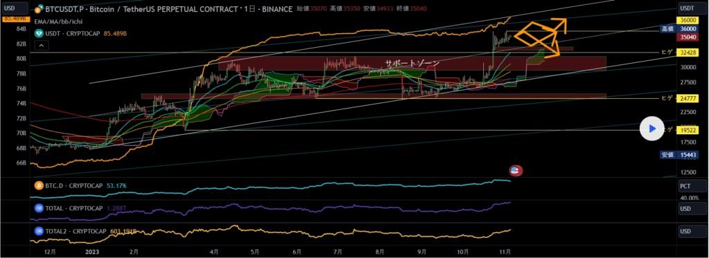 暗号資産市場 ビットコインの価格動向は常に世界中の投資家や市場関係者の注目の的となっています。最近の35,000ドルの価格ブレイクは、これまでのビットコインの歴史の中で最も注目される出来事の一つとなりました。この価格ブレイクは、最大のブルマーケットの始まりを告げるものとして多くの投資専門家から評価されています。 ビットコインは最も知名度が高い暗号通貨の一つであり、その価格は市場の需給、投資者の感情、規制の変化など多くの要因によって影響を受けます。Bitcoin Minetrixは、コストが高くアクセスが難しいビットコインのマイニングに対する解決策を提供しています。Bitcoin Minetrixのクラウドマイニングプラットフォームを利用することで、ユーザーはBTCMTXトークンを購入してステーキングすることにより、マイニングに参加することが可能になります。この方式は、クラウドマイニングの信頼性を高め、以前の詐欺的なサービスによって損なわれた評判を改善することを目的としています。 40,000ドル突破の可能な原因と影響の分析 ビットコインの40,000ドル超えは必然であり、その理由は市場の回復であり、各プロジェクトの優れたパフォーマンスと安定した前進と発展であり、そしてMinetrixは既に300万ドルを超える資金を調達した。 Cointelegraph Markets ProとTradingViewのデータによると、ウォールストリート取引終了後もBTCの価格サポートは維持されています。最も大きな暗号通貨であるビットコインは前日に当日安値を再訪しましたが、34,000ドルは短期的なBTCの価格底としてのテストを成功裏に通過しました。ビットコインは現在11日間にわたって34,000ドル以上を維持しており、これは健全な蓄積ゾーンと見なされています。 過去のパフォーマンス 週間でほぼ36,000ドルに達した後、ビットコインは、潜在的な上昇の継続を目指すトレーダーにとって依然としてお気に入りでした。人気のトレーダー、Credible Cryptoは最新のビデオアップデートで、35,000ドルを超えるのは論理的な次のステップであると示唆しました。 Credible CryptoはElliott Wave分析をXにアップロードし、3つのキーレベルを明らかにしました:34,314ドル、34,714ドル、および35,119ドルで、それぞれが範囲の低点、中間点、および高点を形成しています。彼は説明した、「ここでの重要な点は、我々が中間範囲を超えた衝動を持っていて、それを再取得として保持できるかどうかを確認したいということです。」彼は続けて、「この場合、我々は基本的に中間範囲を再取得して上昇を続けています。範囲の低点からの動きではなく、中間範囲からの動きを行っています。」 Minetrix、300万ドルの価値達成 Minetrixは、ビットコインマイニングのコストが高くアクセスが困難である問題に対処するためのクラウドマイニングプラットフォームを提供しています。ユーザーはBTCMTXトークンを購入してステーキングすることで、マイニングに参加できるようになります。これにより、ユーザーは高価なマイニングハードウェアを購入、設定、運営する必要がなく、また、マイニングに伴う電気料金の心配もありません。しかし、収益は減少する可能性があり、クラウドマイニングサービスには詐欺のリスクがあり、マイニングの具体的な詳細や設定を制御することが難しいというデメリットもあります。 Minetrixの価値は、暗号資産のマイニングとステーキングの収益性、ブロックチェーンネットワークのセキュリティと安定性、投機的要因、分散化の推進、および新技術への適応といった要因によって200万ドルを超えました。特に、Proof of Work (PoW) から Proof of Stake (PoS) への移行というトレンドに伴い、ステーキングは多くの主要な暗号資産プロジェクトで注目されており、PoSはエネルギー効率が良く、環境への影響が少ないため、サステナビリティの観点からも注目されています。 Minetrixの価値増加の市場と投資者への可能な影響の分析 Minetrixの価値増加は、暗号資産市場におけるマイニングとステーキングの重要性を再確認するものであり、これは投資者にとって魅力的な収益機会を示しています。また、市場のボラティリティが高いため、多くの人々が短期・中期での利益を追求しており、Minetrixはそのような投機的な目的を持つ人々にとって魅力的なオプションとなっています。さらに、Minetrixの成功は、暗号資産のエコシステム全体をサポートし、ネットワークの分散化を推進し、一つのエンティティがネットワークを支配するリスクを低減することにも貢献しています。